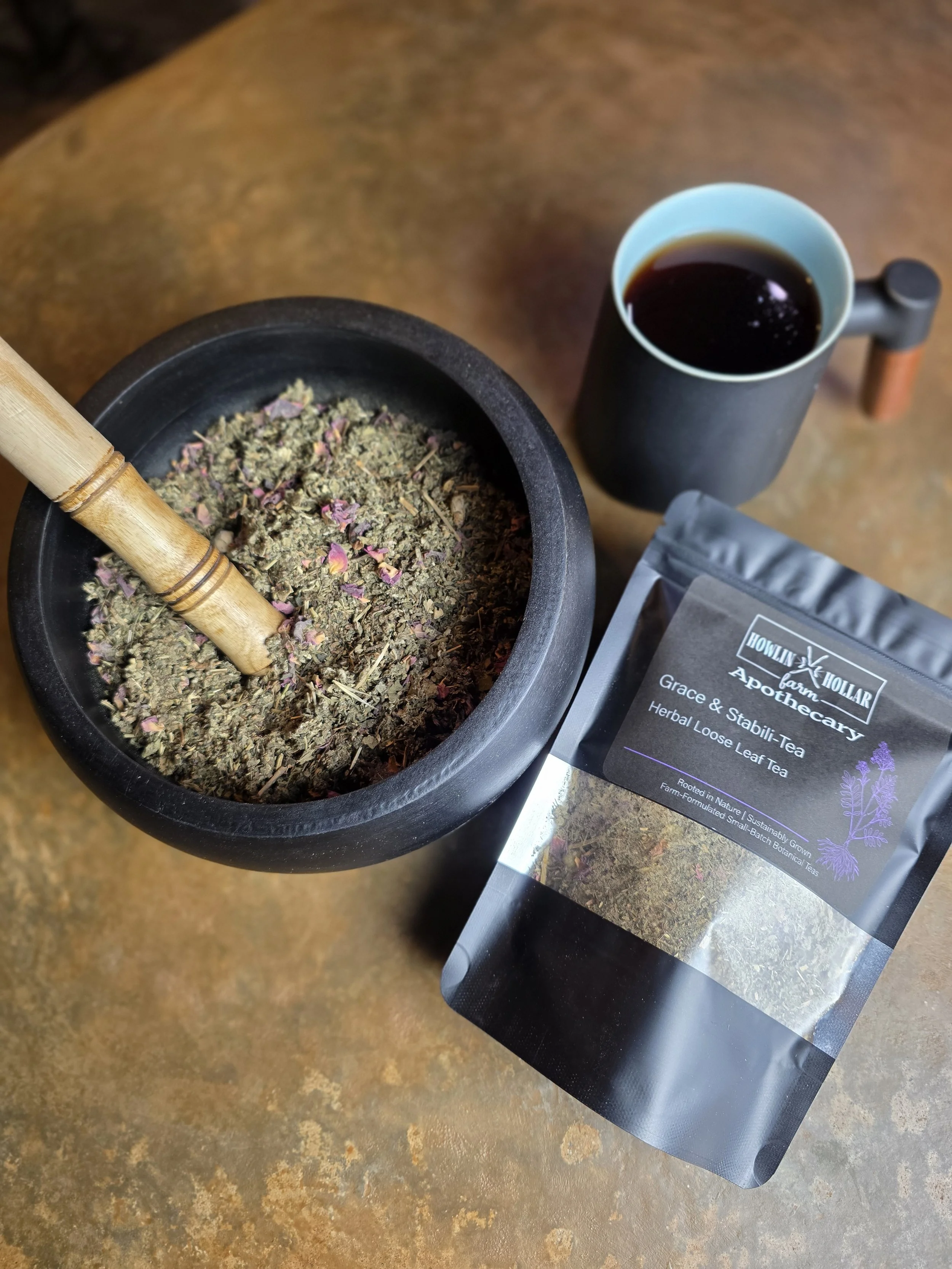 Raspberry Leaf & Nettle Leaf: This pair of herbs provides a full-bodied, deep green base for the blend. Raspberry Leaf is a classic uterine tonic in Western herbalism, while Nettle is a nutritive powerhouse, rich in vitamins and minerals.