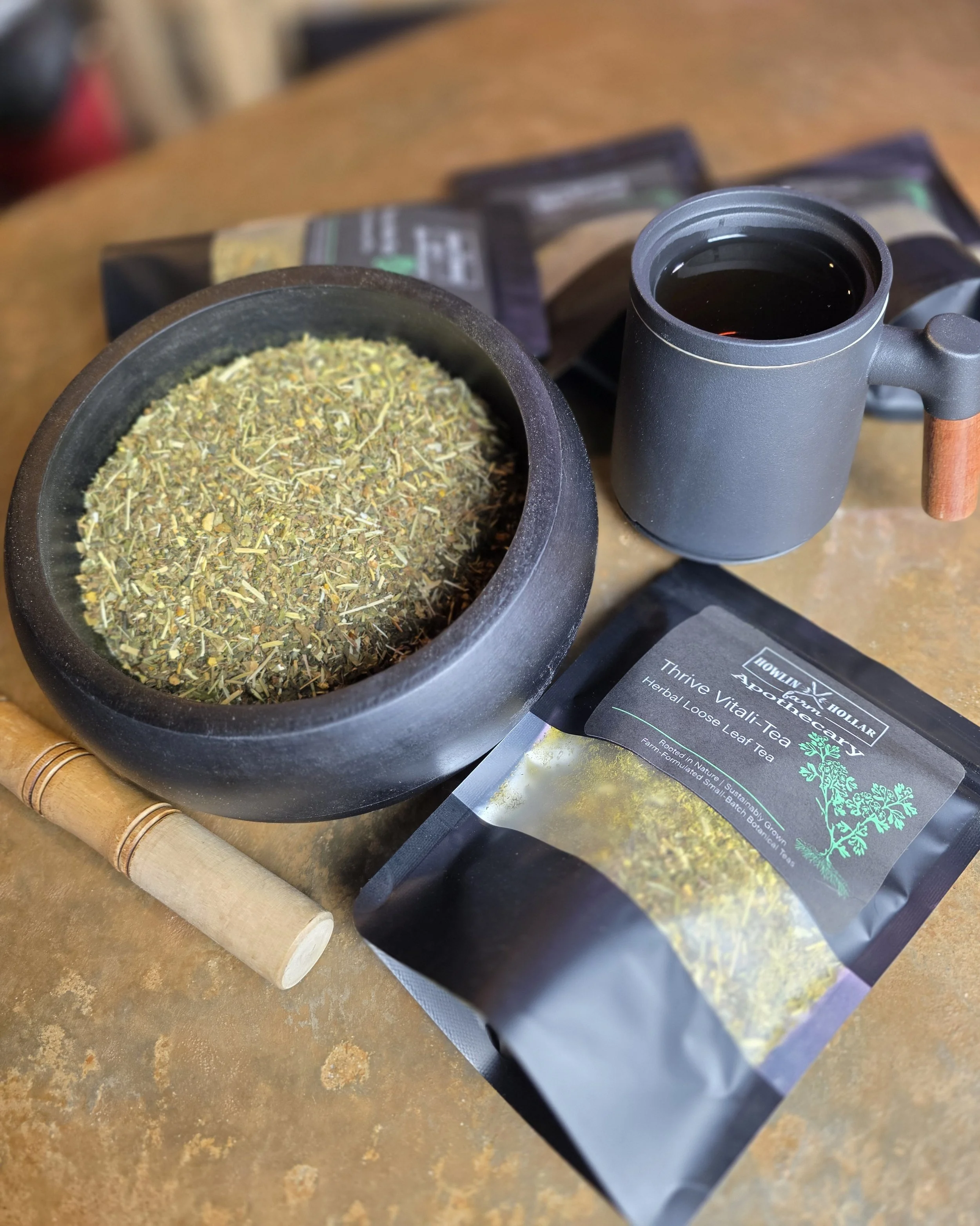 Holy Basil (Tulsi) & Eleuthero Root: Two of the most revered adaptogens in herbalism. Tulsi, "The Queen of Herbs" from India, and Eleuthero, a staple of traditional practices in Asia, are included to support the body's resilience to stress and fatigue.